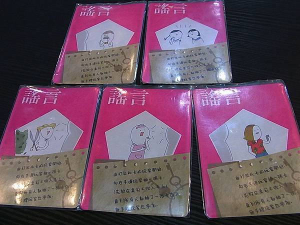 謠言 每位玩家向右手邊玩家抽取一張牌,一群三姑六婆啊