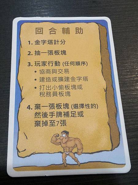 稅務員卡可指定一名玩家隨機偷取對方牌架上的一張石頭板塊