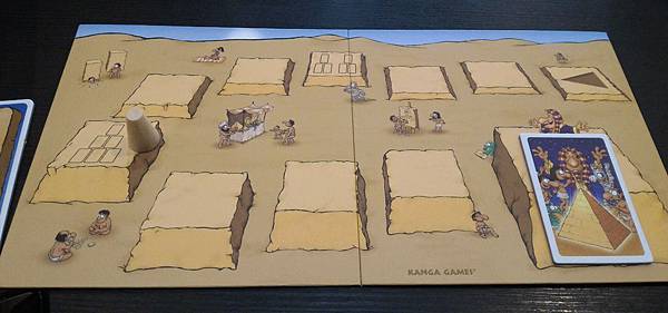從牌架上打出石頭板塊來建設或是擴建金字塔