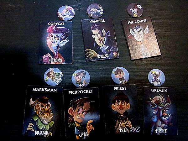 以上三個角色睜開眼睛,共同決定將一枚吸血鬼標記面朝下放在一名玩家面前