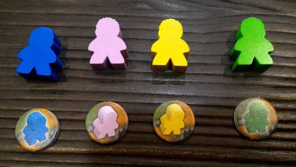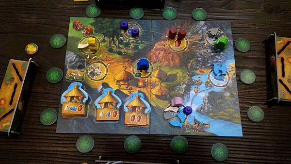 每個玩家拿取一個部落地基及顏色標記,將小人放在房屋的位置
